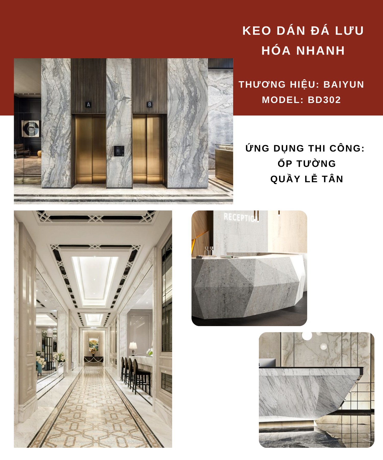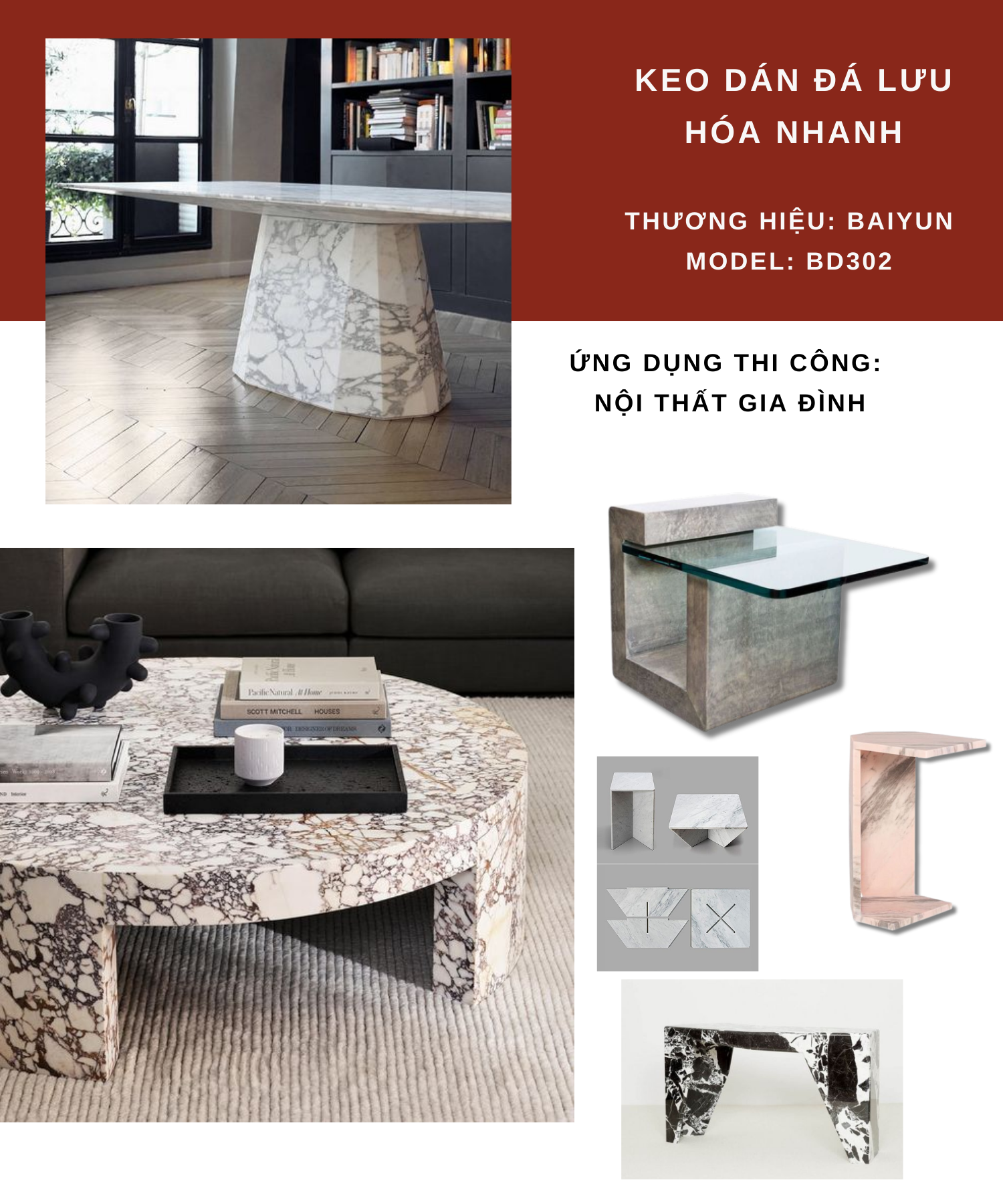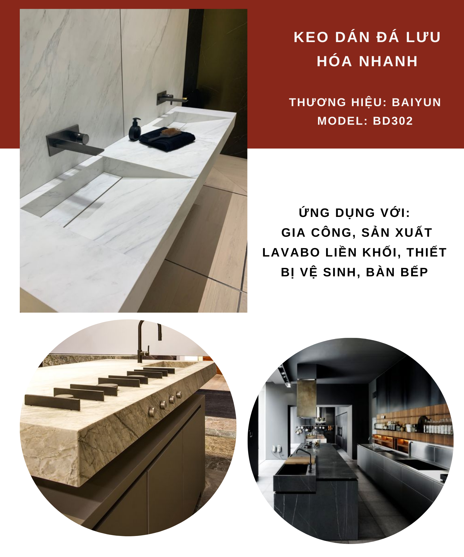 KEO BAIYUN DÁN ĐÁ BD302 LÀ DÒNG KEO POLYME NHỰA KẾT DÍNH NHANH KHÔ, KHÔNG BÃO HÒA 2 THÀNH PHẦN CƯỜNG ĐỘ CAO. ĐƯỢC DÙNG ĐỂ CỐ ĐỊNH NHANH VẬT LIỆU ĐÁ VÀ GẠCH SỨ, SỬA CHỮA VẬT LIỆU ĐÁ, GẮN KẾT ĐÁ.